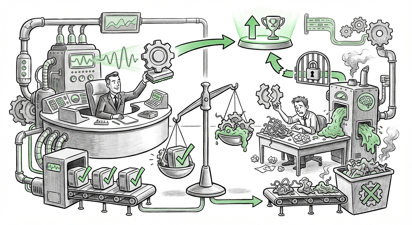 Actionable Insight: Audit Your AI Incentives. Do not tie performance reviews solely to utilization rates. Instead, focus on project outcomes where AI was *allowed* to be used. Introduce a "Validation Score" metric: employees are rewarded for demonstrating how they successfully leveraged AI outputs to achieve a quantifiable business result, or for identifying and documenting severe tool failures that lead to necessary process improvements.